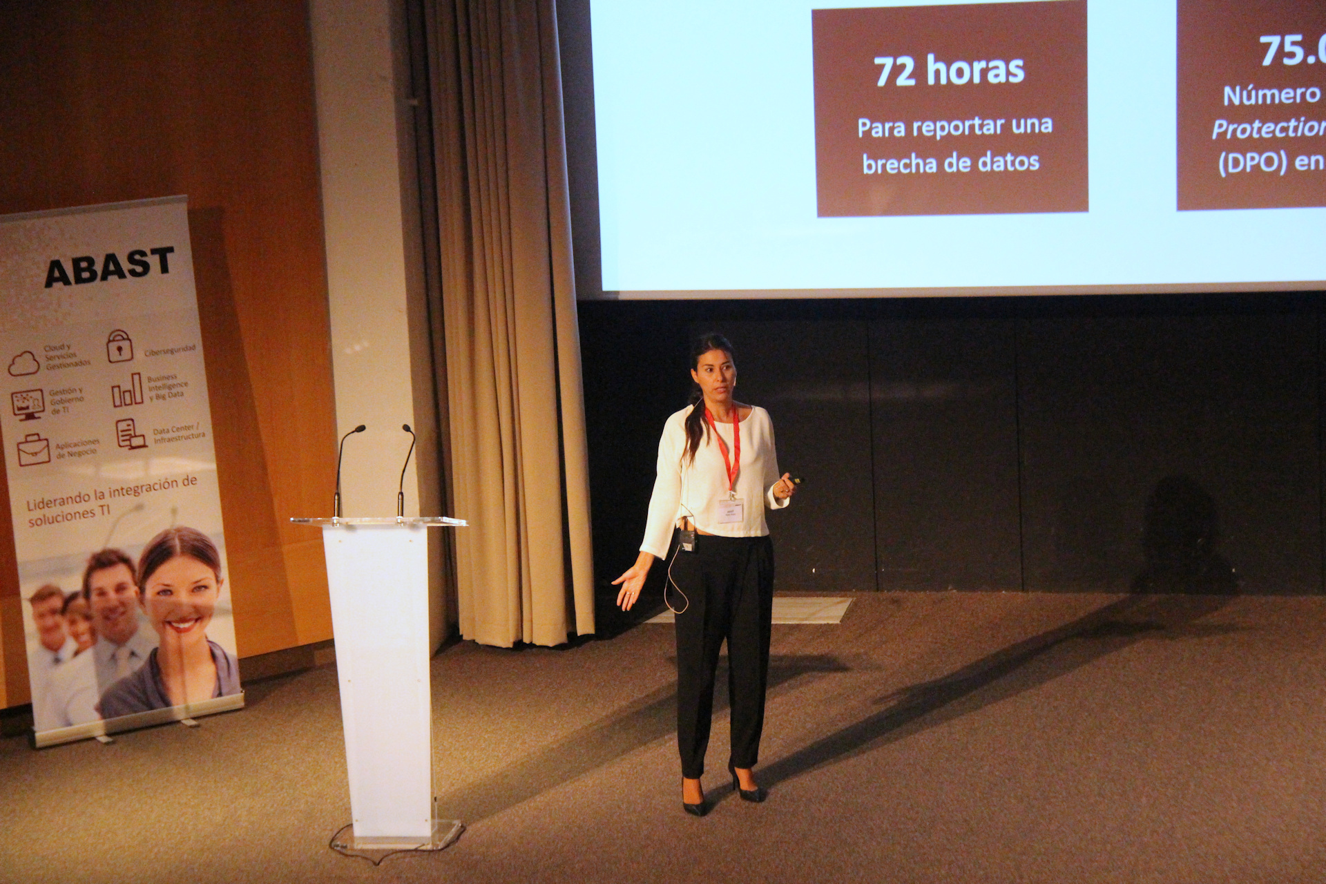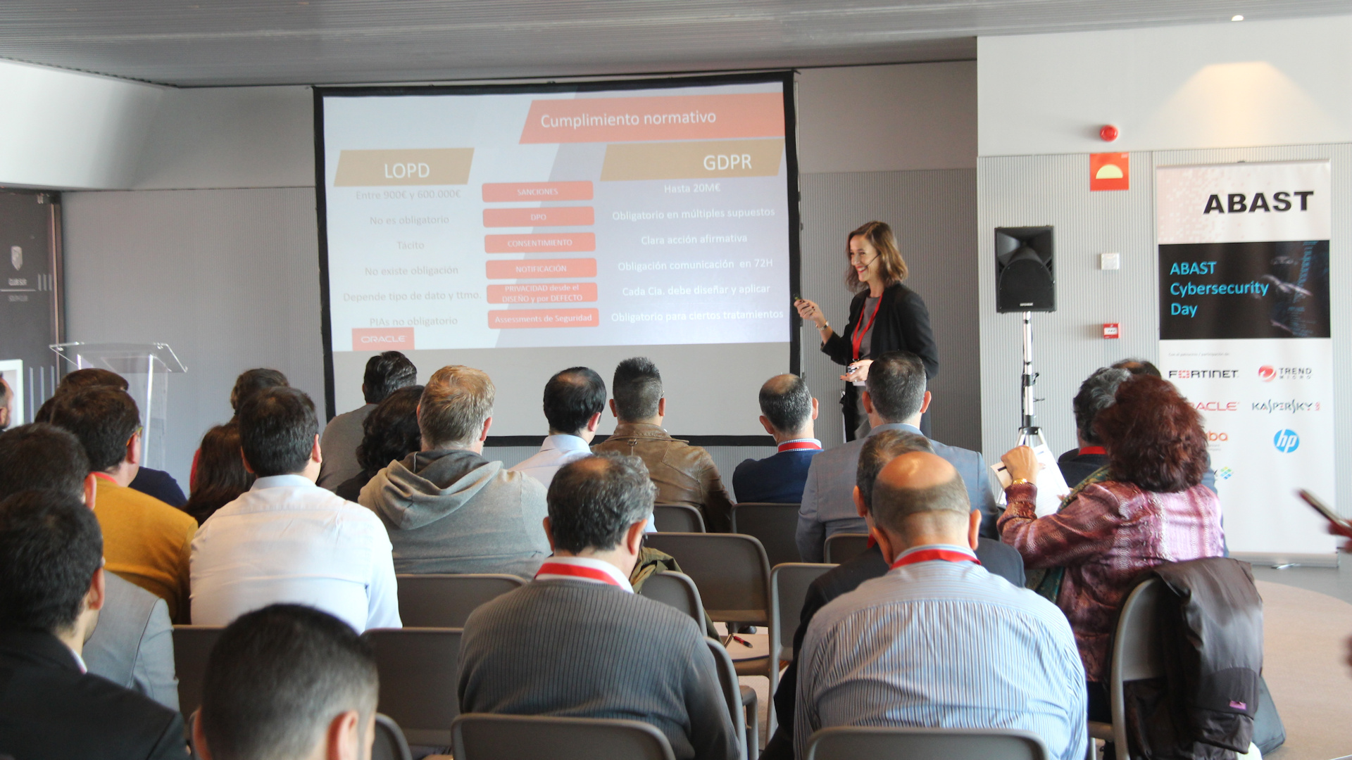 Tras el coffee-break, volvió a tomar la palabra Nelia Argaz, Responsable de Negocio del área de Consultoría de ABAST, quien trató un tema muy de actualidad: la inminente puesta en vigor del nuevo Reglamento General de Protección de Datos (GDPR) que unifica la normativa de protección de datos en todos los países de la UE. Nelia explicó las diferencias entre el GDPR y la LOPD y qué pasos son necesarios que tomen las empresas para cumplir con esta regulación y no exponerse a importantes sanciones.