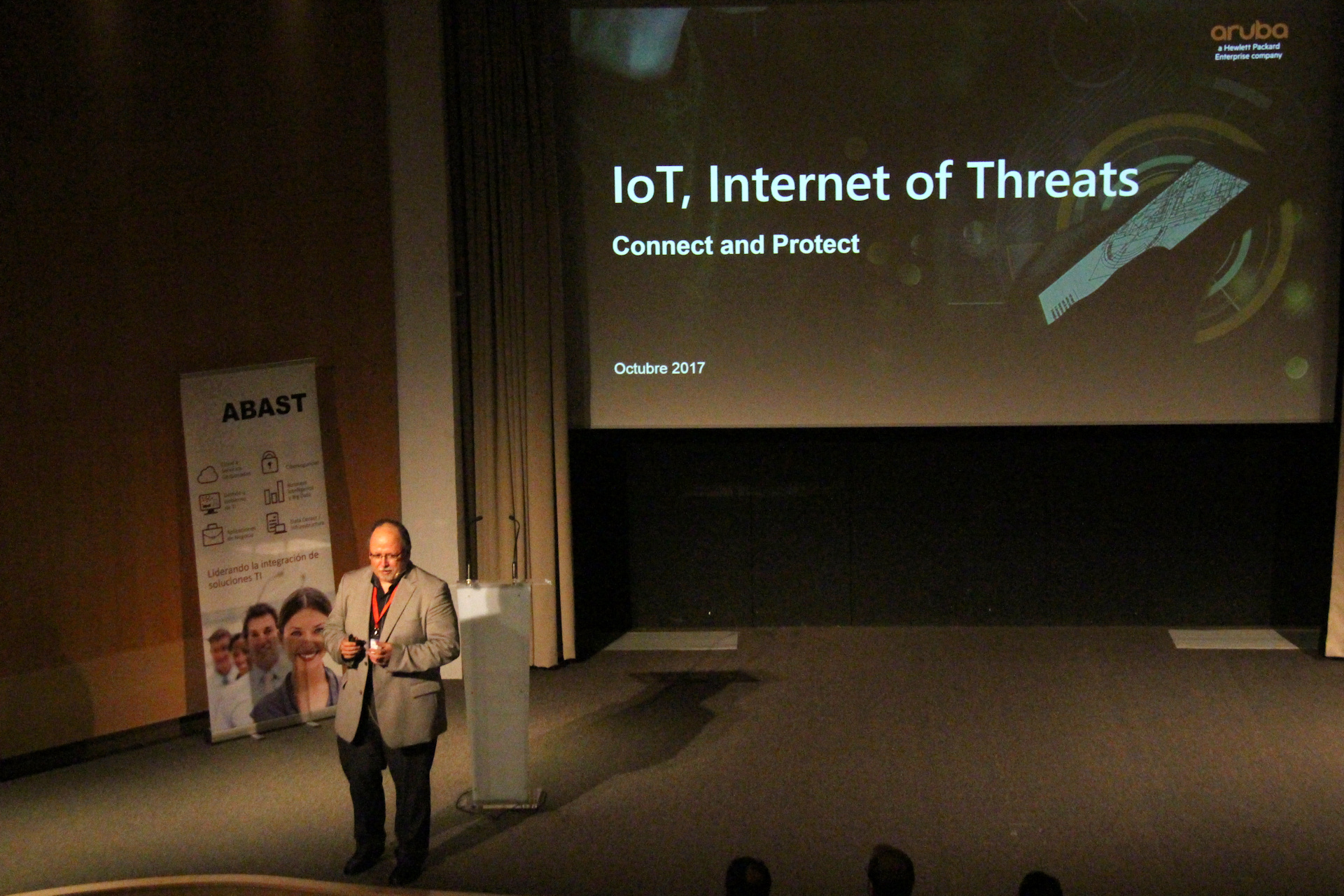 “IoT, Internet of Threats” fue el título de la ponencia con la que Pedro José Caballero, Presales System Engineer de HPE Aruba, quiso concienciar al público asistente sobre las nuevas amenazas que se derivan del desarrollo de la Internet de las cosas (IoT). Pedró José explicó también como prevenir estas amenazas con soluciones que gestionan el acceso a la red de usuarios y dispositivos BYOD e IoT, capaces de descubrir comportamientos anómalos que ayuden a la detección temprana de ataques o extracción de datos.