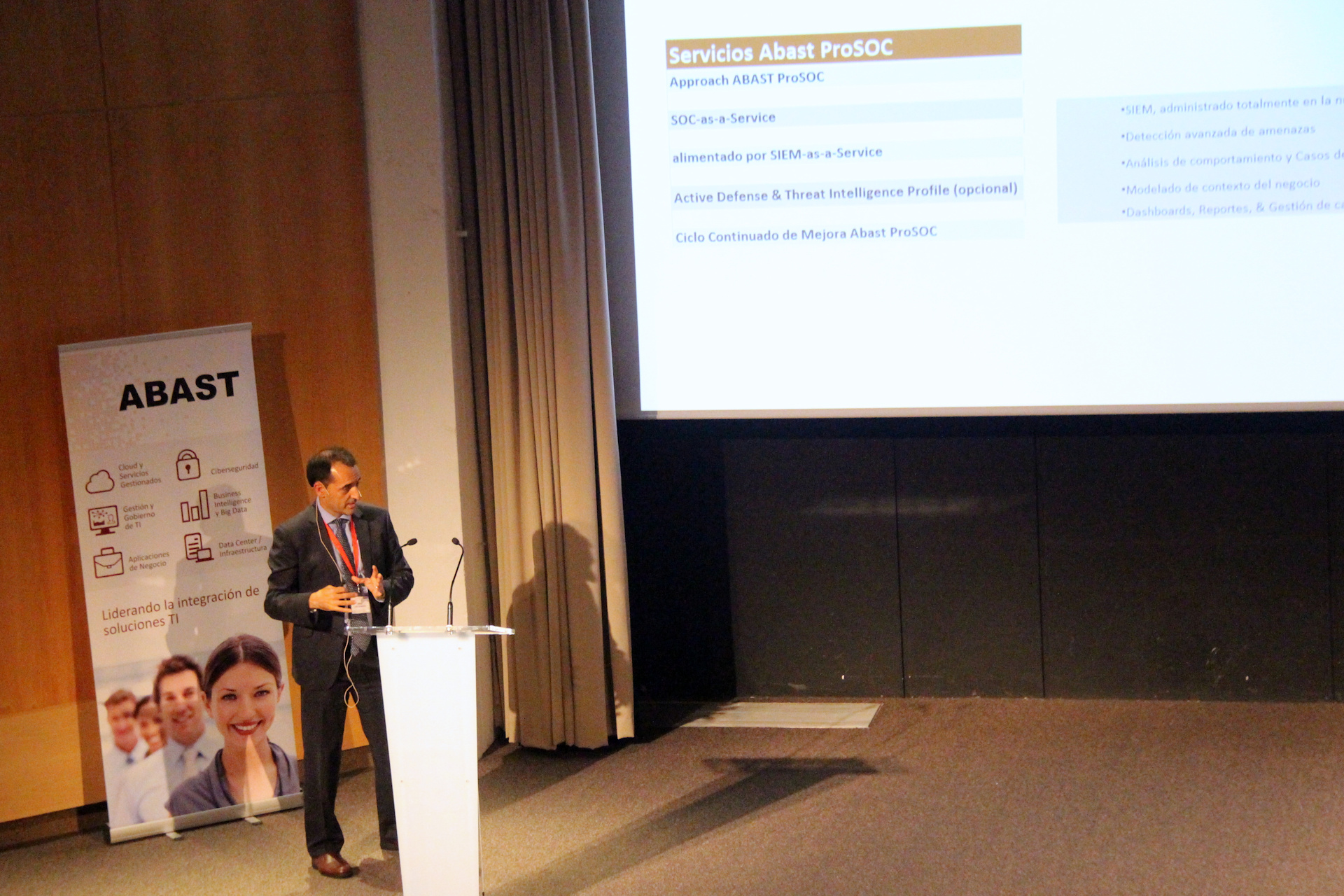 Por último, Jose Santamaría, Responsable de Negocio del área de Seguridad y Comunicaciones de ABAST, presentó ABAST ProSOC, los nuevos servicios gestionados de Centro de Operaciones de Seguridad que ABAST ofrece en colaboración con Proficio. José hizo también u resumen de toda la oferta de ABAST en el ámbito de soluciones y servicios de ciberseguridad.