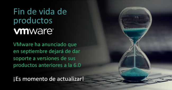 VMware ha anunciado que en septiembre de este año dejará de dar soporte a versiones de sus productos anteriores a la versión 6.0, por lo que desde ABAST recomendamos a todas las empresas que actualmente todavía utilicen vSphere 5.5 u otros productos VMware de versiones 5.x actualizar a las nuevas versiones 6.5 o 6.7. A través del enlace que le proporcionamos puede descargar un documento con información detallada sobre las fechas de fin de soporte de los productos VMware y, si lo desea, nuestros consultores preventa pueden realizar un análisis gratuito para medir el impacto que este fin de soporte puede tener en su infraestructura.