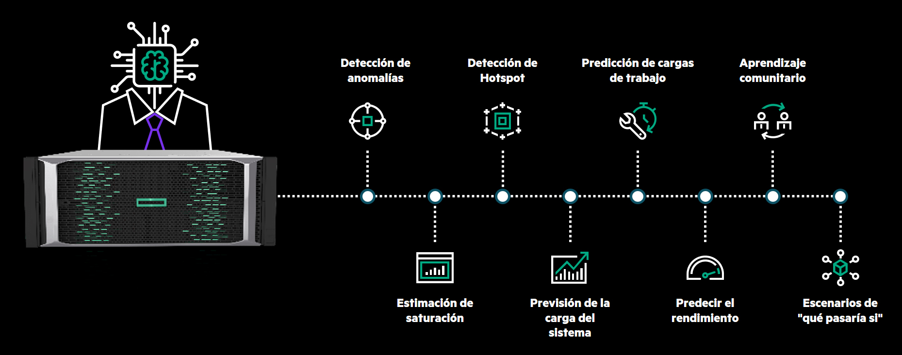 Se ha integrado integrado la inteligencia artificial para infraestructura más avanzada del sector, HPE Infosight, en HPE Primera para optimizar el rendimiento y la colocación de las cargas de trabajo en tiempo real. De hecho, se ha logrado que el aprendizaje automático basado en la nube de toda la base instalada esté disponible en tu cabina para habilitar las optimizaciones en tiempo real.