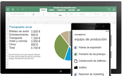 Las aplicaciones de Office más actualizadas le permiten crear, editar y compartir desde su PC/Mac o su dispositivo iOS, Android o Windows. Office 365 se ha diseñado para funcionar con el software, los dispositivos (PCs, tablets, smartphones…) y los navegadores que ya forman parte de las herramientas de trabajo habituales. Esto proporciona a sus empleados los recursos necesarios para acceder a la información y continuar siendo productivos con independencia del tipo de acceso que utilicen. Además, no tendrá por qué preocuparse, ya que sus documentos siempre se muestran tal cual son.